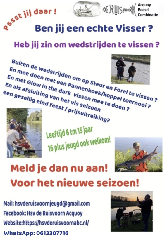 Voor de jeugd en jeugd 16 + organiseren wij ieder seizoen 6 vis wedstrijden.